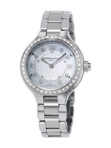 La montre Frédérique Constant FC-240MPWD2NHD2B-SS incarne une élégance intemporelle avec son boîtier en acier inoxydable de 30 mm et son cadran en nacre blanche orné de diamants sertis. Les chiffres romains noirs contrastent harmonieusement avec les aiguilles polies, tandis que le mouvement à quartz garantit une précision fiable. Protégée par un verre saphir et étanche jusqu’à 30 mètres, cette montre combine luxe et durabilité. Le bracelet en acier inoxydable complète ce design raffiné, idéal pour les femmes recherchant sophistication et performance.