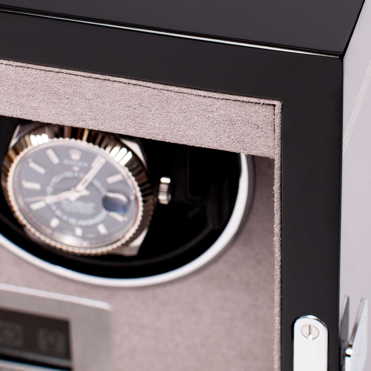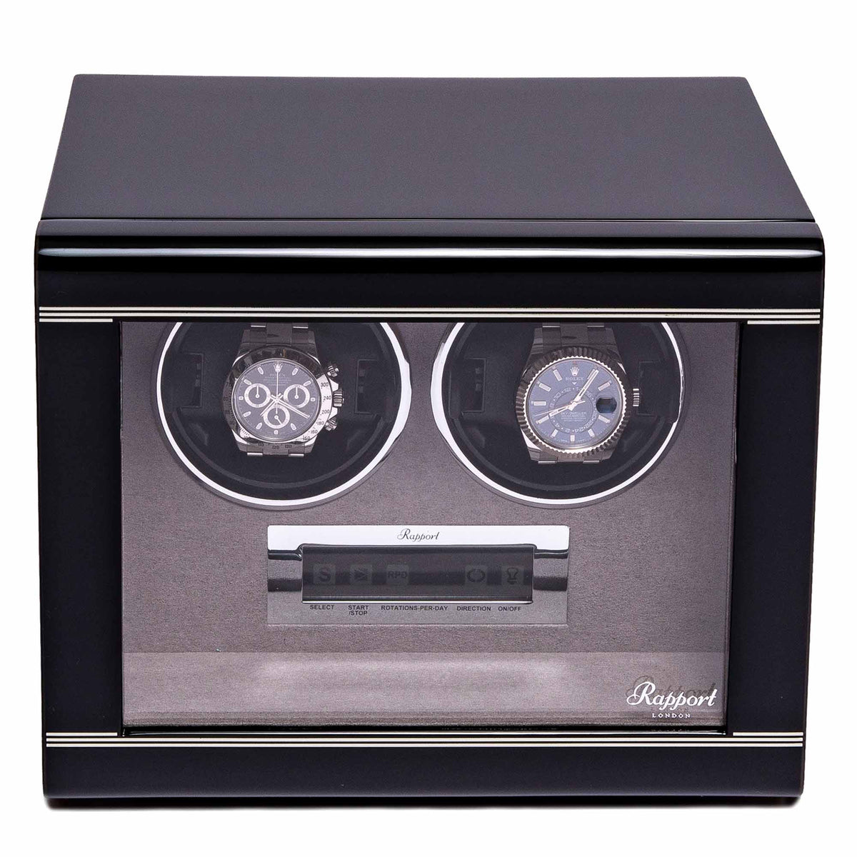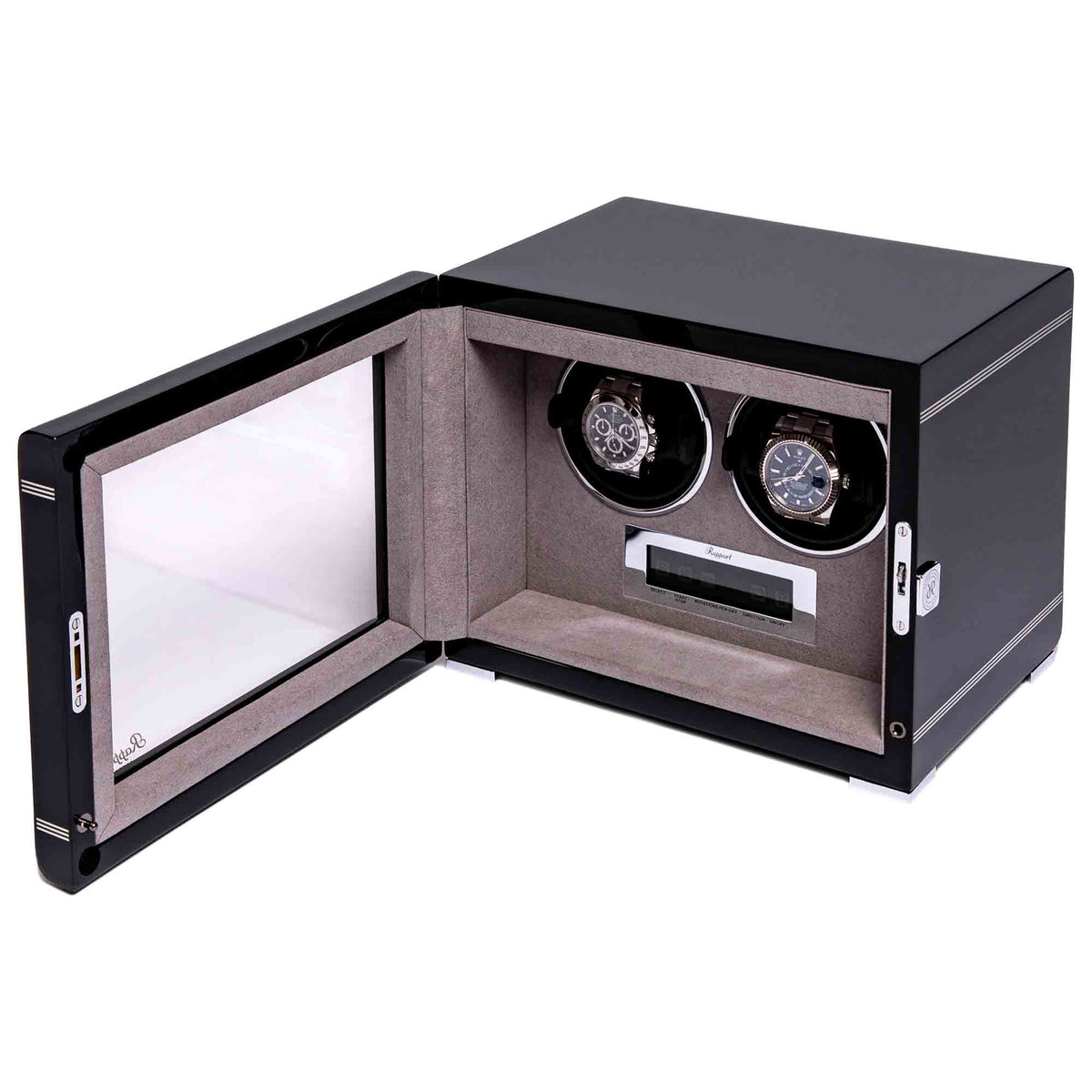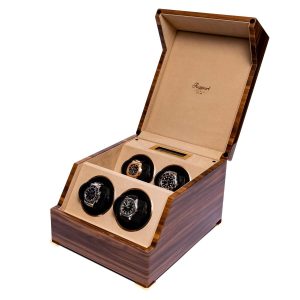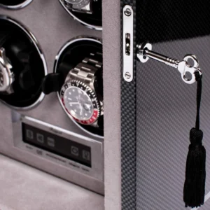 Une montre de qualité durera toute une vie si elle est bien entretenue, et la gamme de remontoirs Formula promet de le faire. Le modèle Formula est doté d’une porte avant en verre verrouillable avec trois bandes distinctives à l’avant, qui caractérisent cette gamme. Ce remontoir est une manière élégante de garder vos deux montres automatiques en parfait état de marche. Un panneau de contrôle LCD vous permet de sélectionner une gamme de réglages, avec un éclairage intérieur pour un effet amélioré.