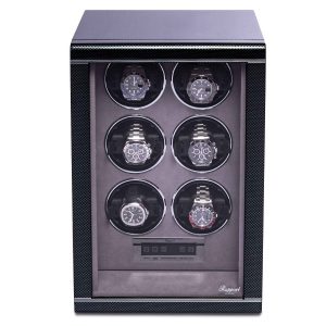 Un remontoir de montres classique et élégant avec un design moderne. Le luxueux boîtier en ébène noir ou en noyer accueille neuf de vos montres automatiques préférées. L’intérieur sophistiqué est équipé d’un panneau de contrôle LCD, de parois en velours gris doux et d’un éclairage arrière. L’accès sécurisé par empreinte digitale rend la gamme Paramount spéciale et est sûr d’impressionner.
