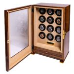 Un remontoir de montres ingénieusement conçu pour les collectionneurs passionnés. Notre remontoir Paramount peut accueillir douze de vos montres automatiques précieuses dans un élégant boîtier en ébène noir ou en noyer à finition brillante. La porte sécurisée par empreinte digitale s’ouvre sur un intérieur lisse en velours gris avec un éclairage d’ambiance doux. Les douze coussins en cuir sont ajustables pour s’adapter à toutes les tailles de montres, et les paramètres de rotation peuvent être contrôlés via le panneau tactile LCD. Il y a donc beaucoup de place pour vos Panerai, Hublot, Patek Philippe et Cartier.