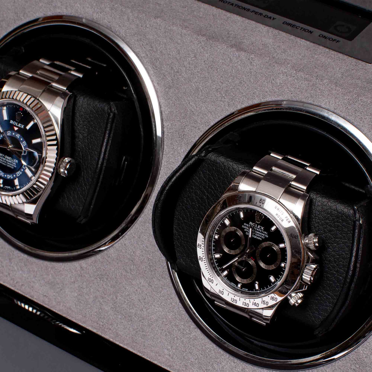 Fabriqué à partir de bois de qualité supérieure avec une finition laquée appliquée à la main, le remontoir Perpetua Duo dégage un certain charme classique qui s’intègre dans n’importe quel décor. L’intérieur est recouvert de velours doux, avec deux coussins en cuir ajustables, équipés de clips en caoutchouc, pour s’adapter à une large gamme de tailles et de styles de bracelets de montres.